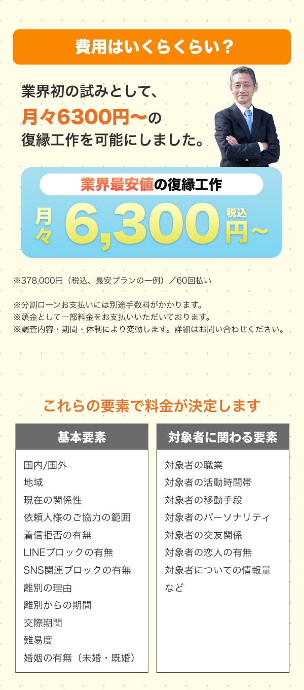 復縁のための調査や各種のカスタマイズ対応、ご相談者へのアドバイスなどを実施していきます。